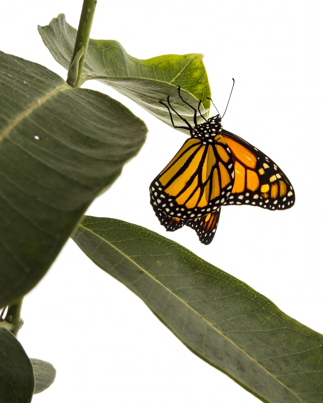 Monarch butterfly on milkweed plant. Monarchs are known for the incredible mass migration (up to 3,000 miles) that brings millions of them to California and Mexico each winter.