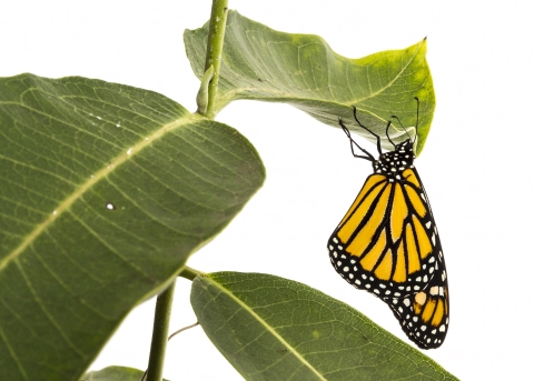 Monarch butterfly on milkweed plant. Monarchs are known for the incredible mass migration (up to 3,000 miles) that brings millions of them to California and Mexico each winter.