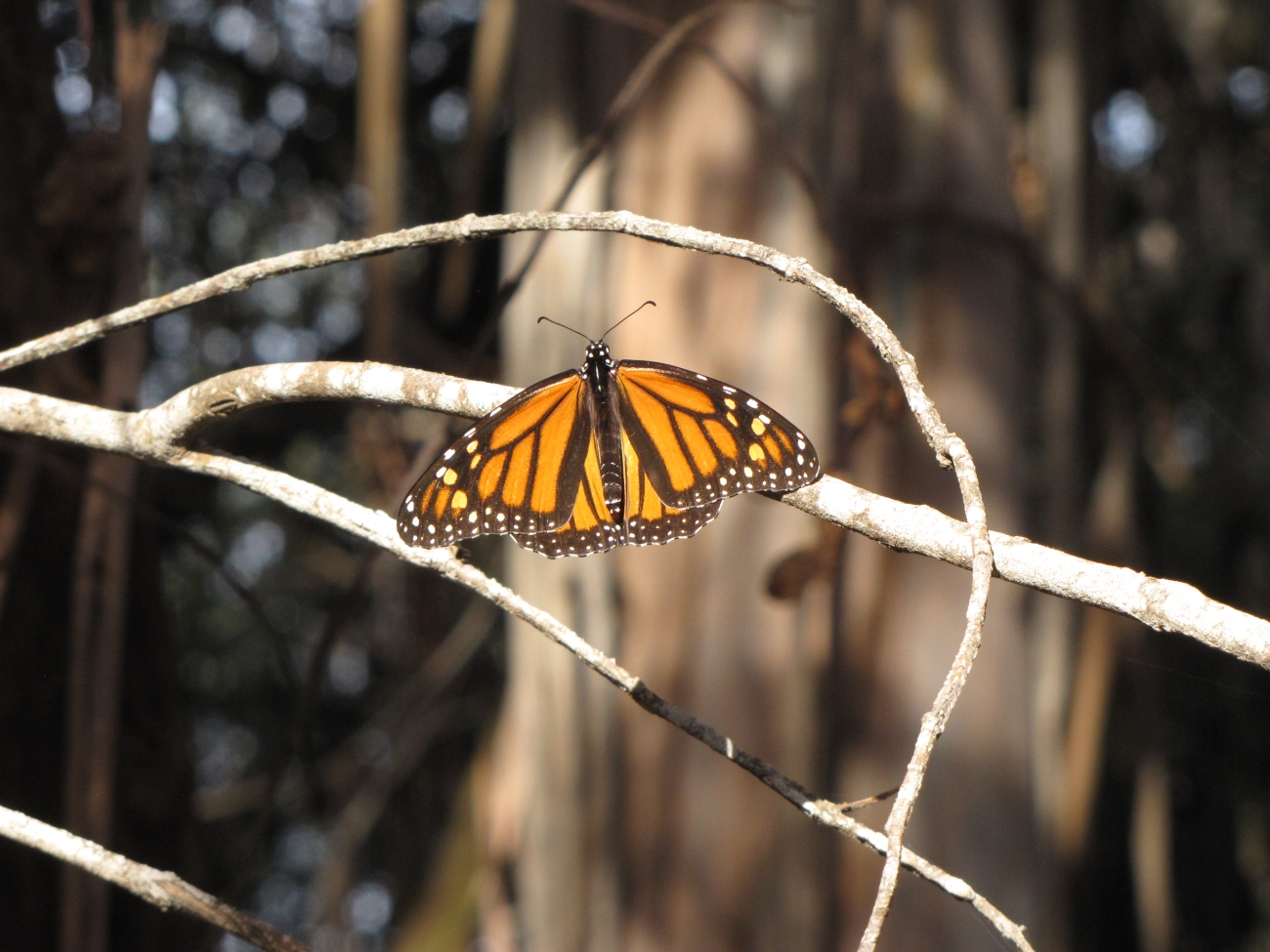A lone monarch butterfly rests on a branch in Ellwood Mesa. Photo by Mike Glenn/USFWS.