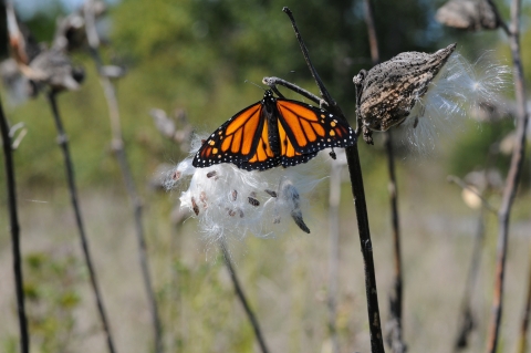 Monarch butterfly on a milkweed.