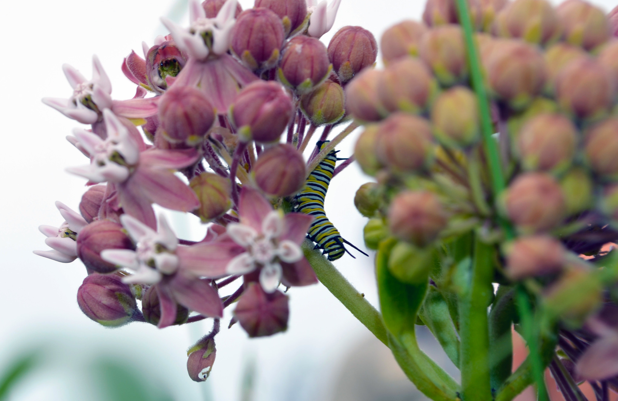 Monarch caterpillar on common milkweed