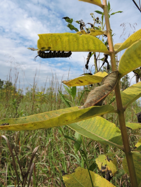 Monarch caterpillar on milkweed