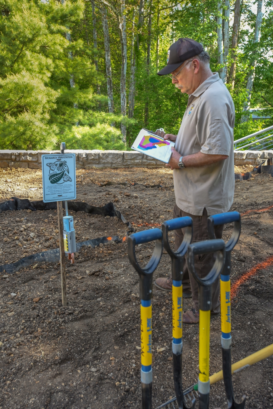 Volunteers plant native flowering plants in a Monarch Waystation Garden to create, conserve, & protect Monarch habitats.
