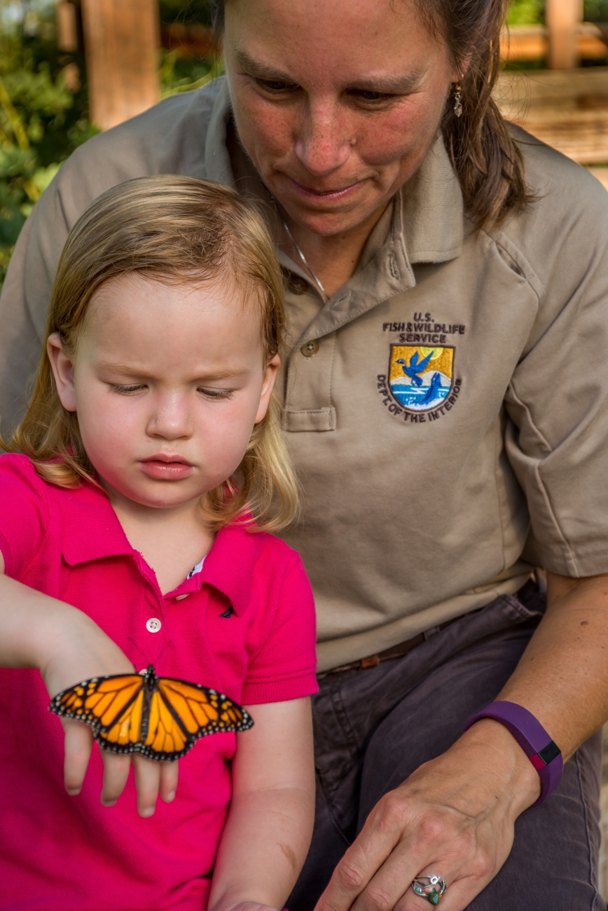 Monarch on hand of little girl
