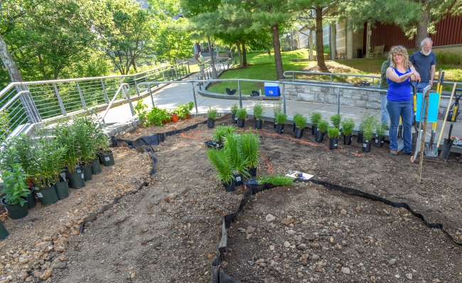Volunteers plant native flowering plants in a Monarch Waystation Garden to create, conserve, & protect Monarch habitats.