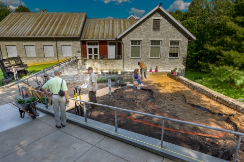Volunteers plant native flowering plants in a Monarch Waystation Garden to create, conserve, & protect Monarch habitats.