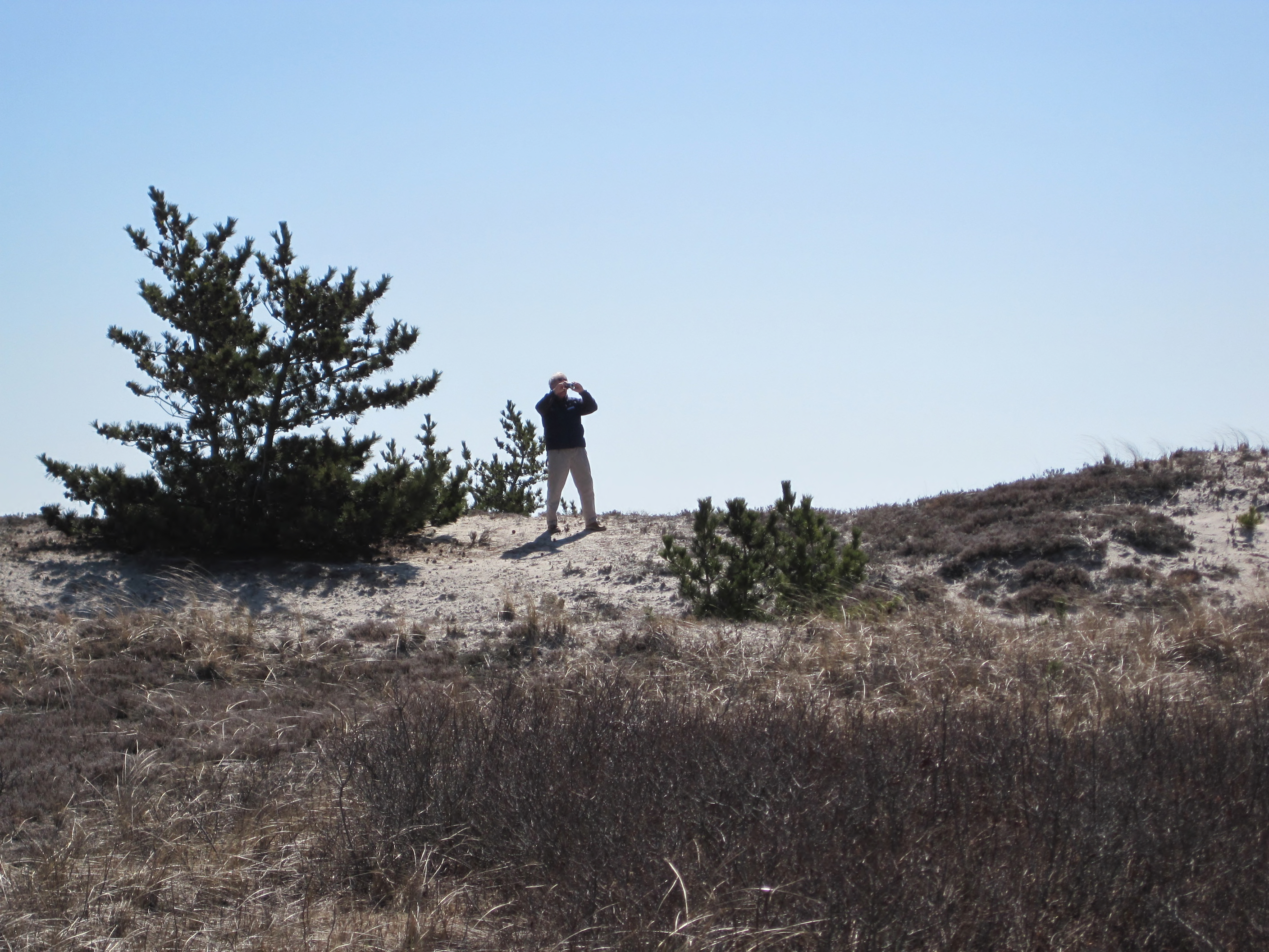 Man taking photograph at Monomoy National Wildlife Refuge, Cape Cod, MA.