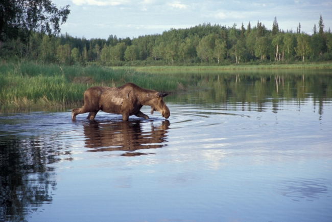 Moose feeding in the lake. Innoko National Wildlife Service; Species; Animals;