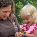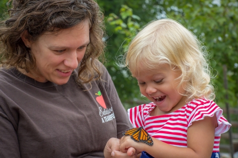 Mother and daughter with monarch butterfly