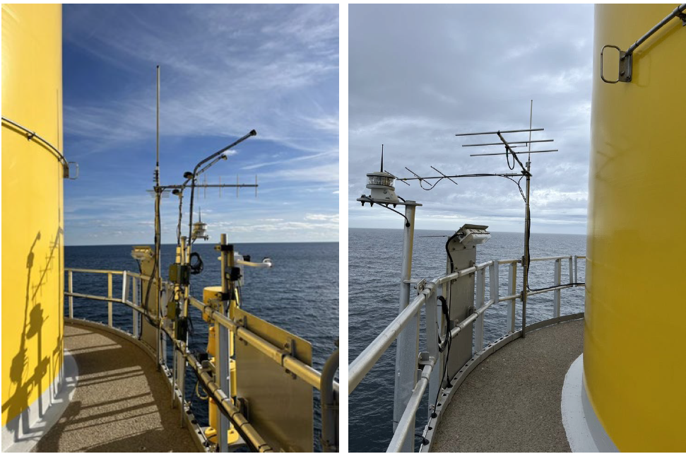 Motus receiving stations attached the platforms on Dominion Energy's pilot wind turbines off the coast of Virginia.