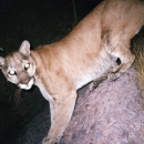 A mountain lion is photographed by a motion-triggered trailcam at Kofa National Wildlife Refuge in Arizona.