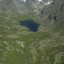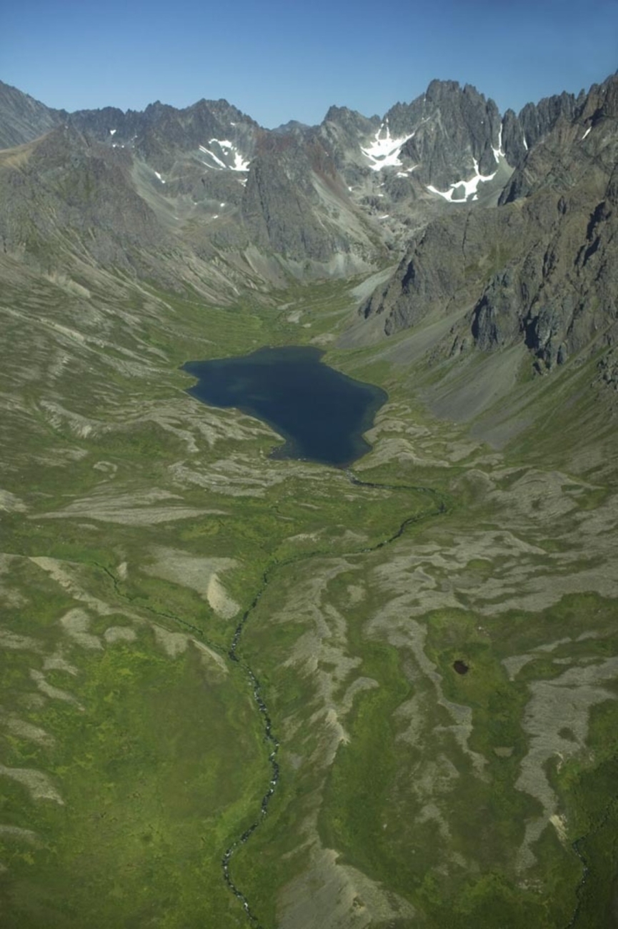 Classic U-shaped valley carved by retreating mountain glaciers. Many glacial features can be seen: cirques, horns, arete ridges, till, hanging valleys.