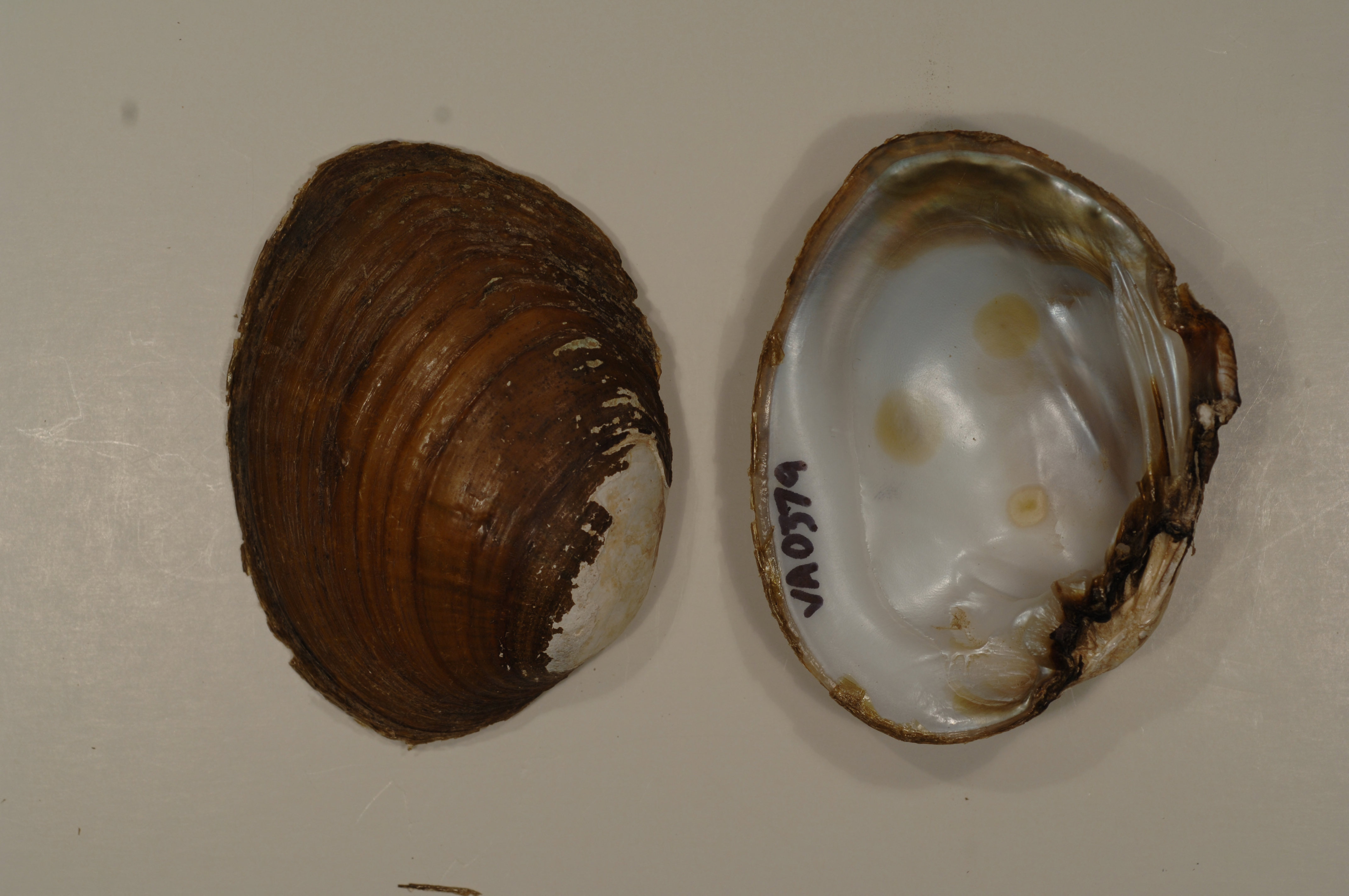 NCTC Freshwater Mussels Teaching Collection: Order: Unionoida Family: Unionidae Genus (ITIS): Ortmanniana Species: ligamentina Williams et al.: Actinonaias Use to be: Actinonaias Location Name: Muskrat Middens-Clinch River, Scott Co. Location State: VA