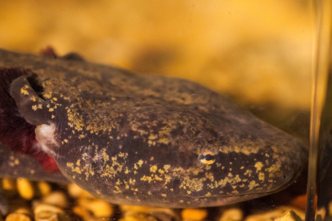 Mudpuppy in captivity close-up.
