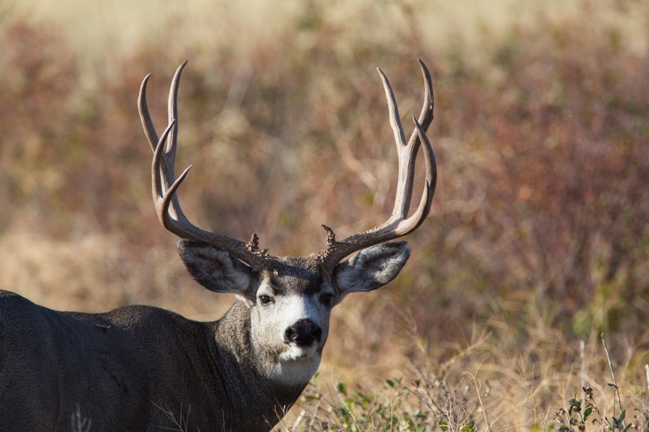 Mule deer buck with large antlers