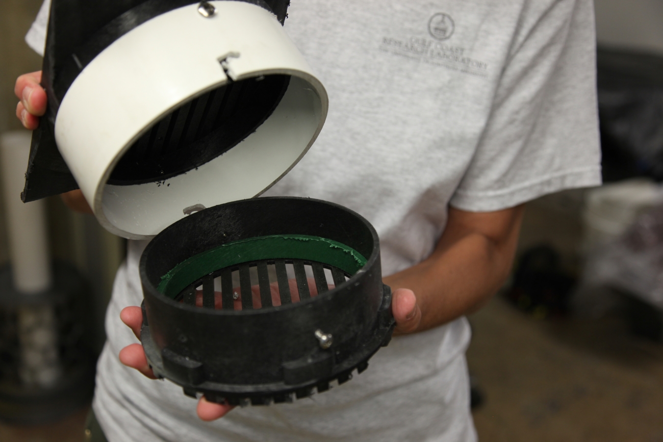 The mussel culture chambers taken apart for demonstration. These chambers can hold sub-adult mussels or adult brood stock. Photo: Chris Barnhart, Missouri State University.