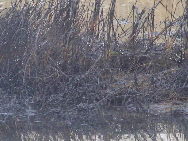 Oiled vegetation in lagoon, North Skan Bay. U. S. Fish and Wildlife Service Response to Grounding/Oil Spill off Unalaska Background Information The U.S. Fish and Wildlife Service is responding to the grounding of the 738-foot cargo vessel M/V Se
