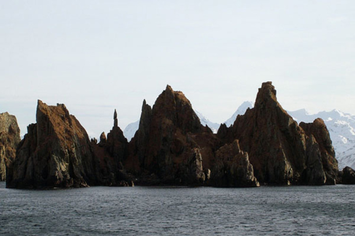Cathedral Point and spire. U. S. Fish and Wildlife Service Response to Grounding/Oil Spill off Unalaska Background Information The U.S. Fish and Wildlife Service is responding to the grounding of the 738-foot cargo vessel M/V Selendang Ayu, off
