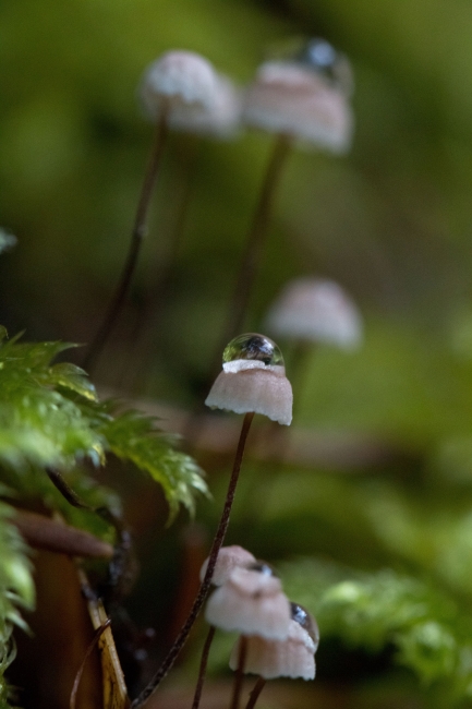 Mycena is a large genus of small saprotrophic mushrooms.