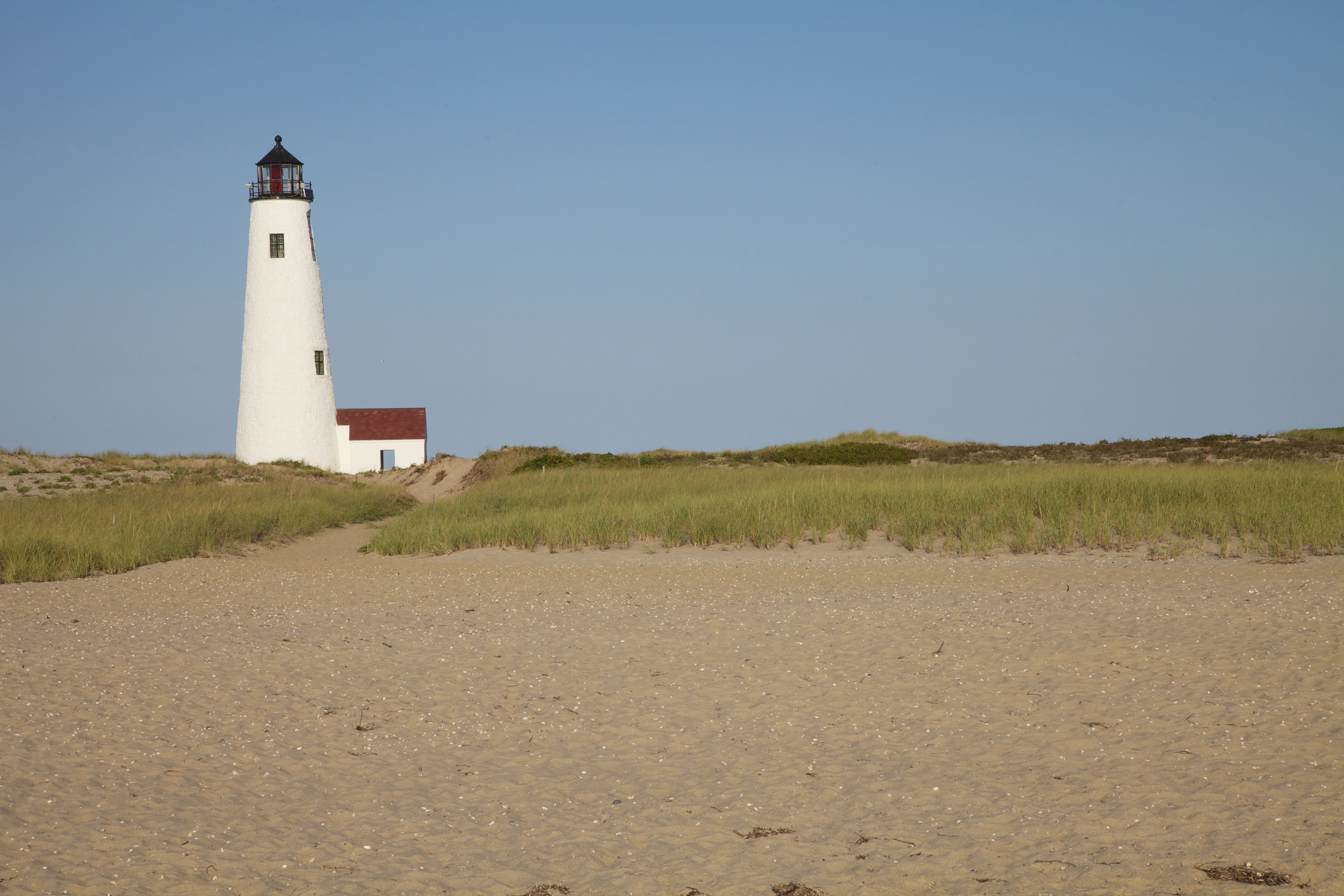 The existing lighthouse, a 60-foot replica of the original 1816 tower, was constructed in 1986. With its extreme location, the light at Great Point still aids mariners' navigation as it flashes every five seconds.