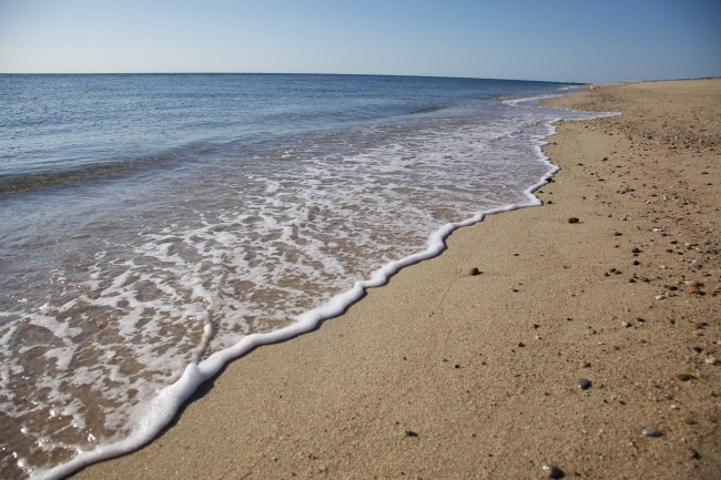 Shoreline on Nantucket NWR. Migrating shorebirds, such as Roseate Tern, use the beach as resting and refueling area before flying South.