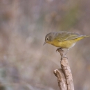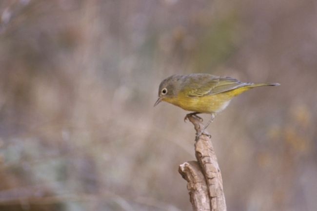 Close view of male bird standing on end of old post near Upper Klamath Lake in Winema National Forest.