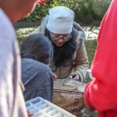Natali Ramirez-Bullon, of the Asheville Field Office, helps a student check a D-frame kick net during the Toes in the Toe Festival in Mitchell County, N.C.
