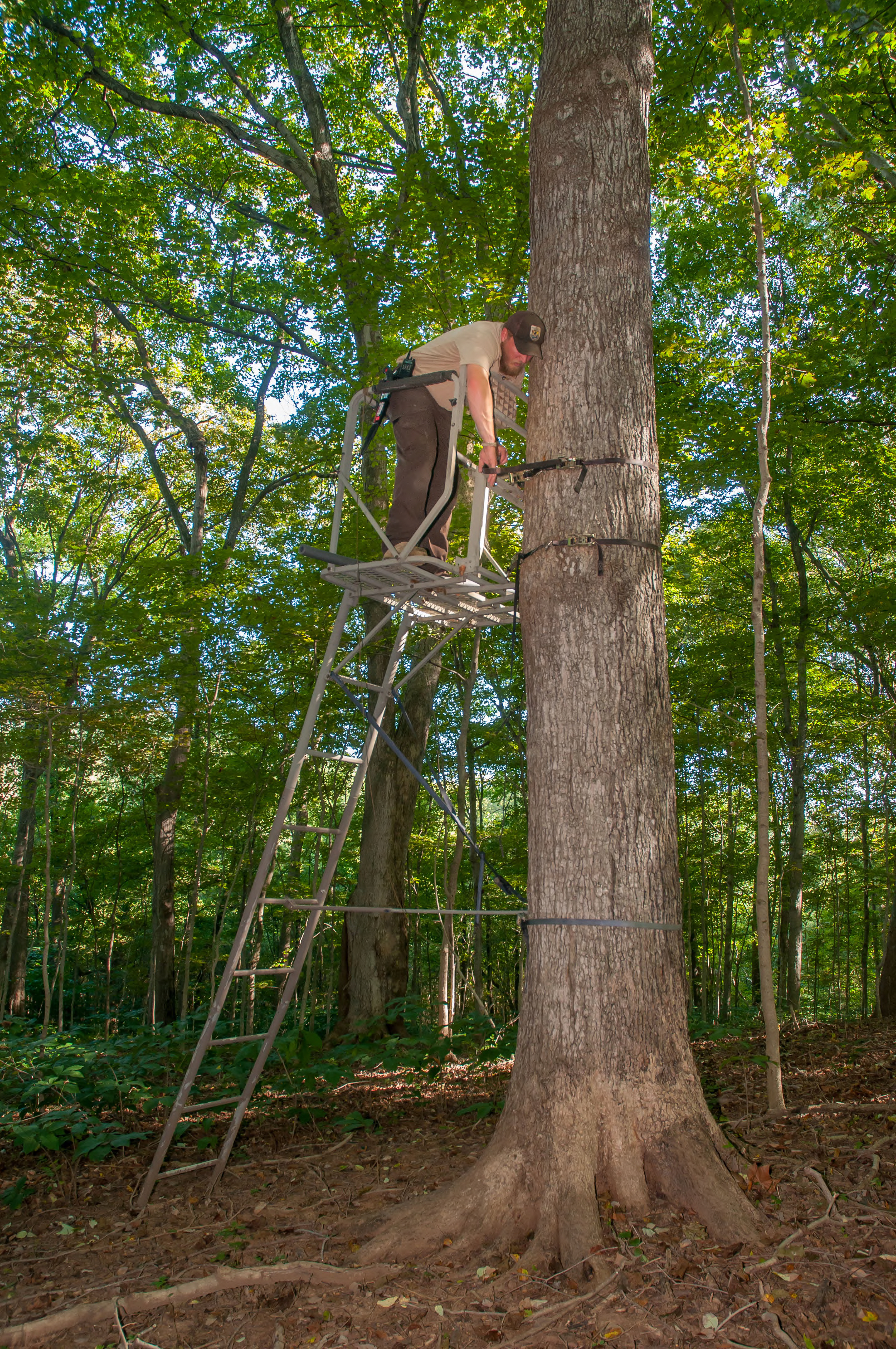 National Conservation Training Center land management specialist inspecting deer stand for safety