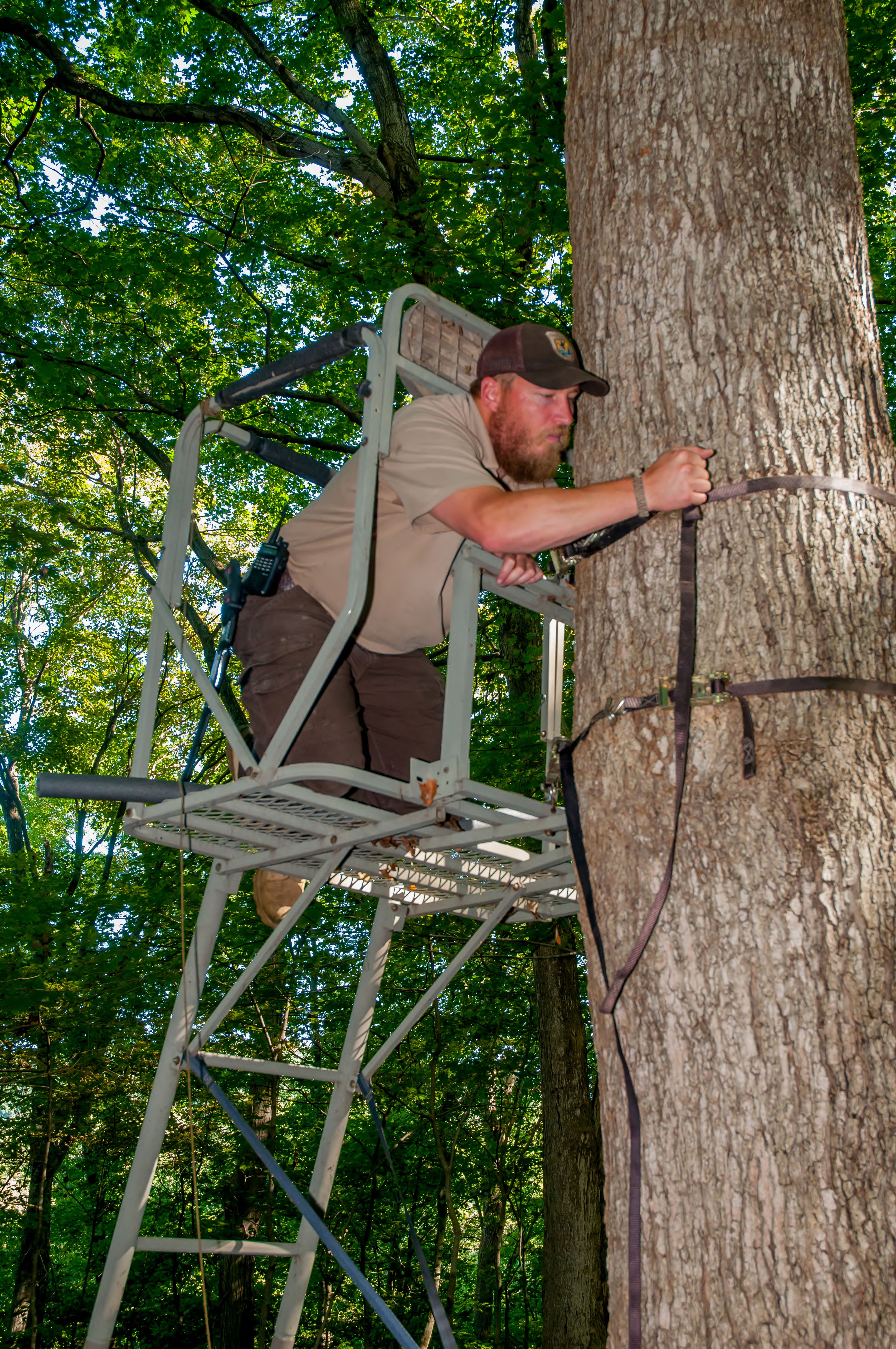 National Conservation Training Center land management specialist inspecting deer stand for safety