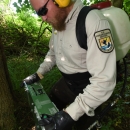 NCTC land management specialist uses motorized injector to treat ash trees for emerald ash borer