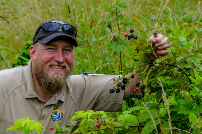 National Conservation Training Center land management specialist with wild blackberry bushes with berries