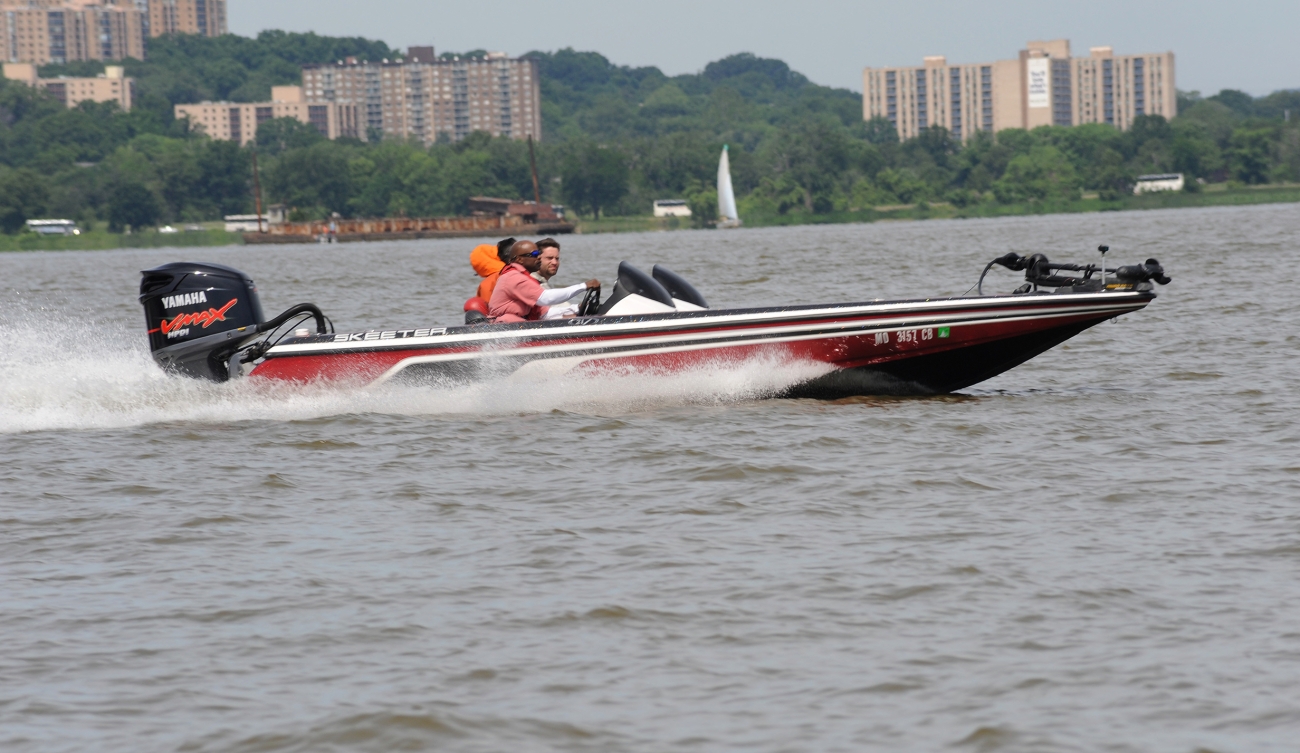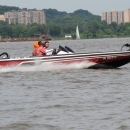 A speedboat takes off at the 2011 National River Bass Tournament.