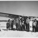 Children in front of small plane on skiis. The village of Kaltag is located on the Yukon River.