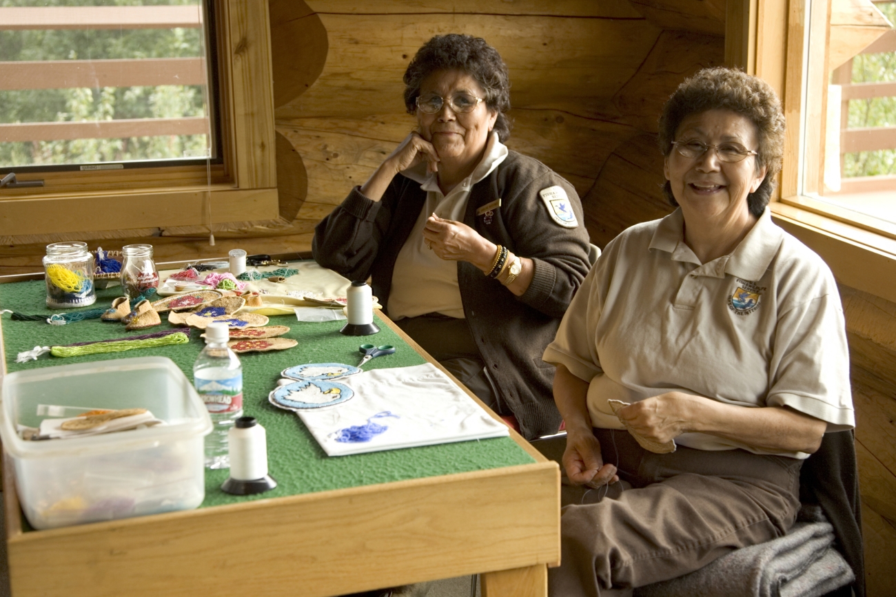 Native American U.S. Fish and Wildlife Service employees making crafts