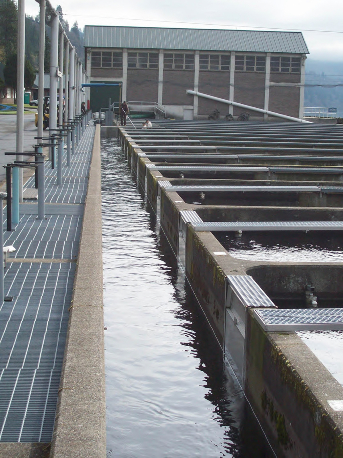 After being removed from a Hatchery raceway where they have spent the past few months, Tule Fall Chinook salmon pre-smolts swim down this channel, out the Hatchery intake pipe their parents entered six months ago, and enter the Columbia River.