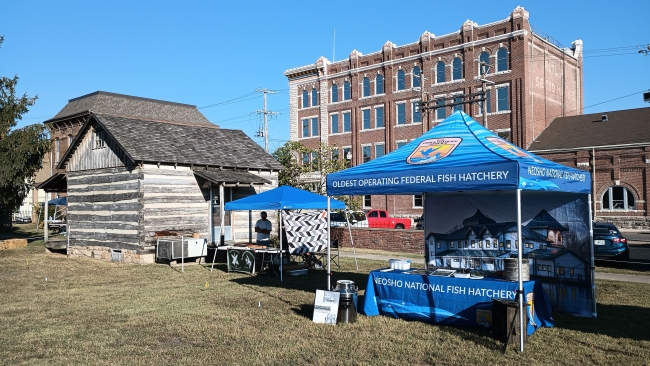 The Neosho Fall Festival is a community event that draws thousands of participants annually. This year celebrated 56 years of this event. The Hatchery had a great booth set up in History Alley on the grounds of the Neosho Historical Society. This gave the Friends of the Neosho National Fish Hatchery the opportunity to introduce the community to the latest historic project we have at the Hatchery.