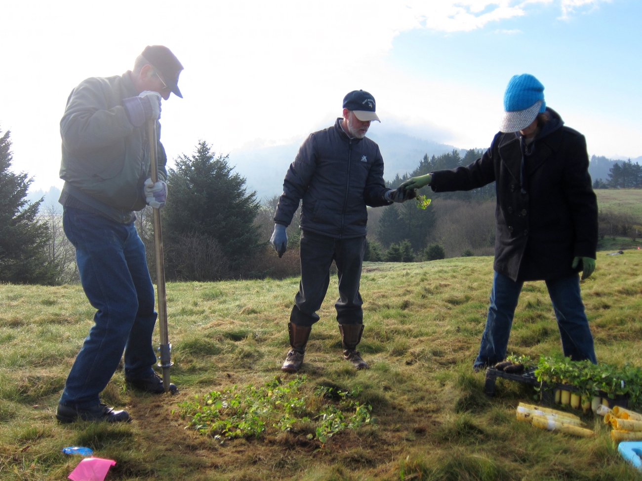 USFWS Portland-based staff and partners from the Institute for Applied Ecology partnered with Nestucca Bay National Wildlife Refuge to plant early blue violets and pearly everlasting flowers on the refuge's Cannery Hill unit. These flower are native to the refuge's coastal prairie habitat. The project is part of a joint effort to aid in the recovery of the Oregon silverspot butterfly, a Federally threatened species. A dibbler, a plug remover, and a planter was the team make-up that would get 4,200 early blue violets into the ground that day. Volunteers split off into groups of three to make their way through the 4,200 early blue violet plugs that would reach that day.