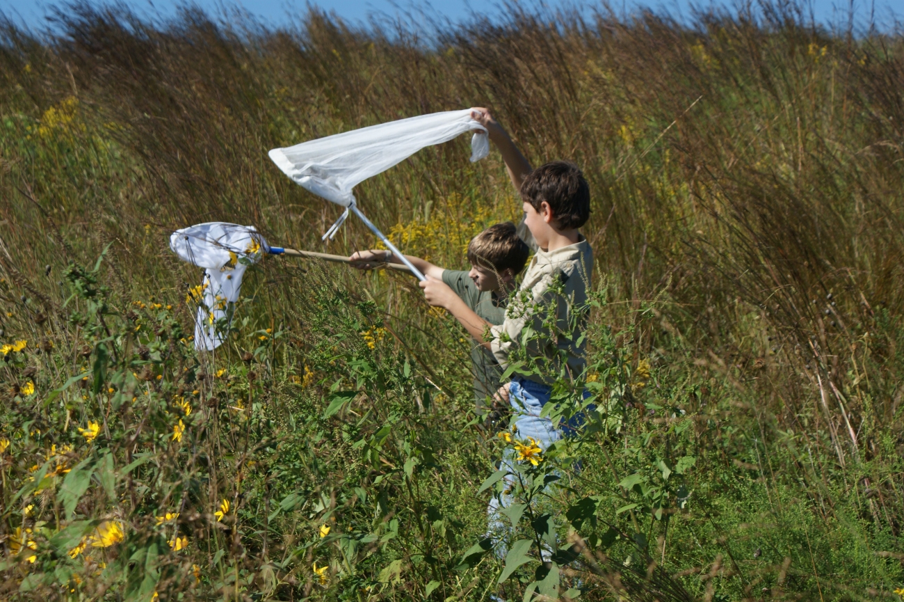 Children net monarchs for tagging during Monarch Madness at Neal Smith National Wildlife Refuge in Iowa.