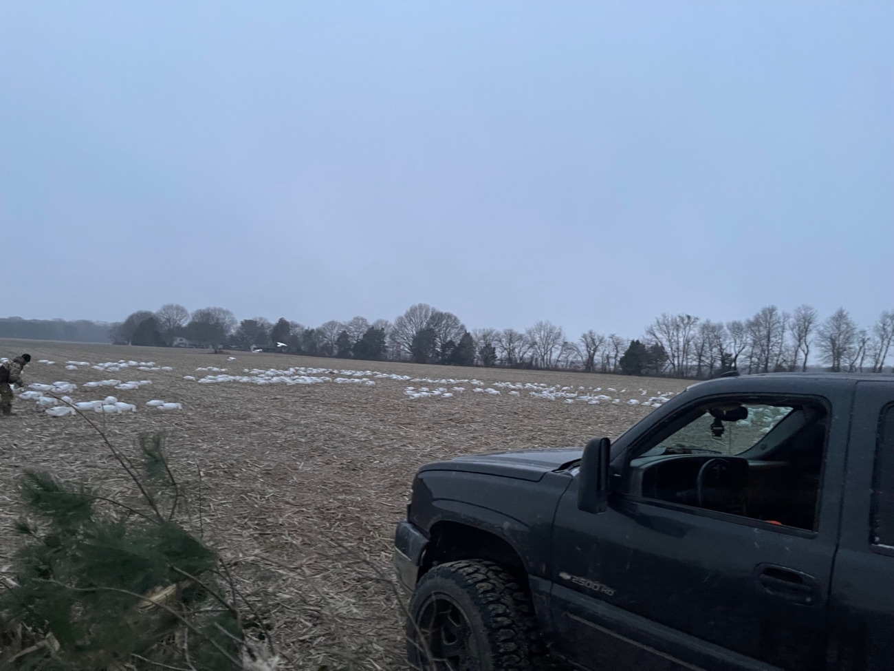 Josh Neuwiller setting up snow goose decoys prior to a hunt outfitted by Wye East Outfitters.