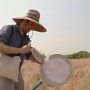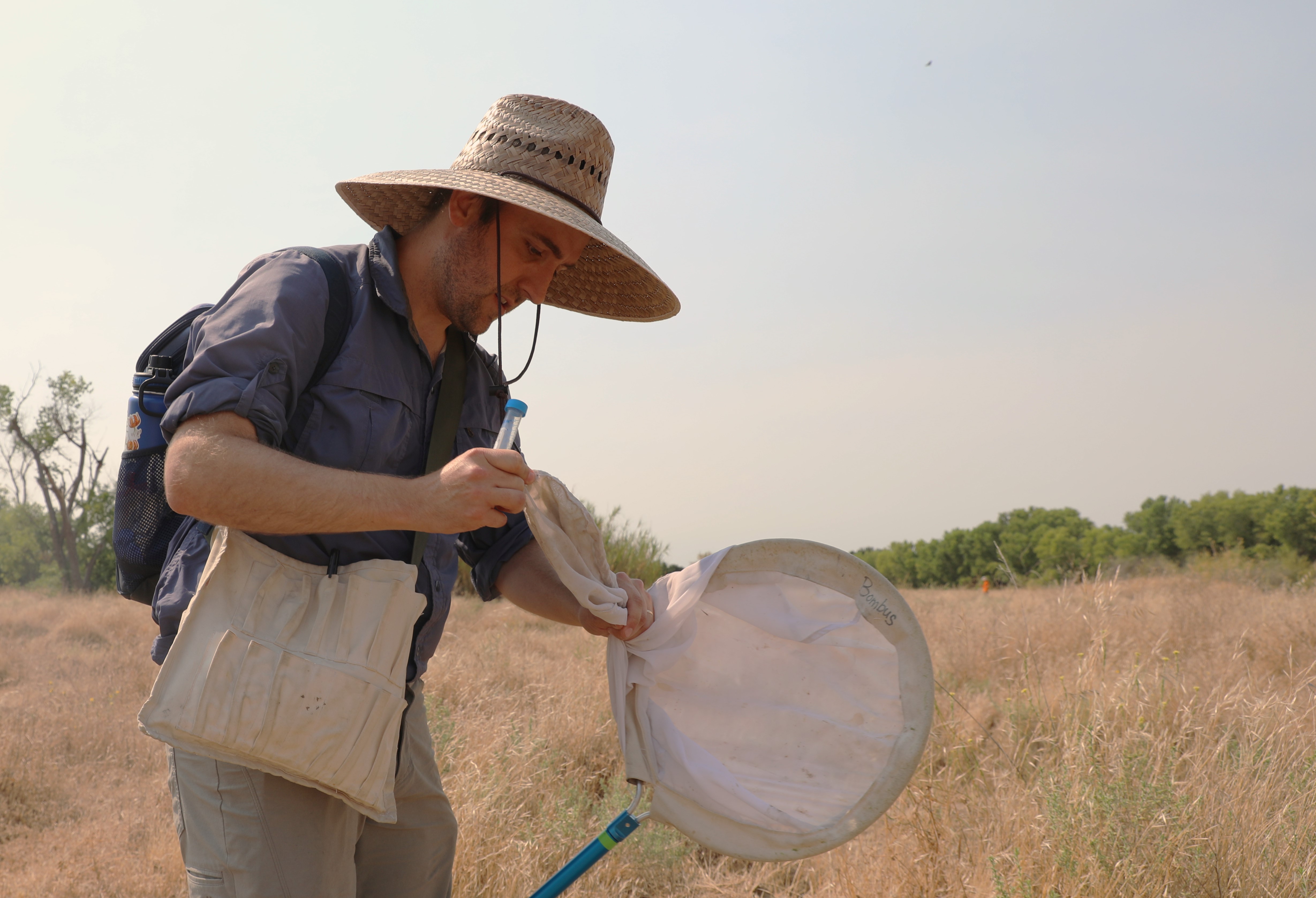 Nevin Cullen, USDA Agricultural Research Service post doctoral researcher and pollination biologist catching bees during non-lethal surveys in Sacramento River National Wildlife Refuge.