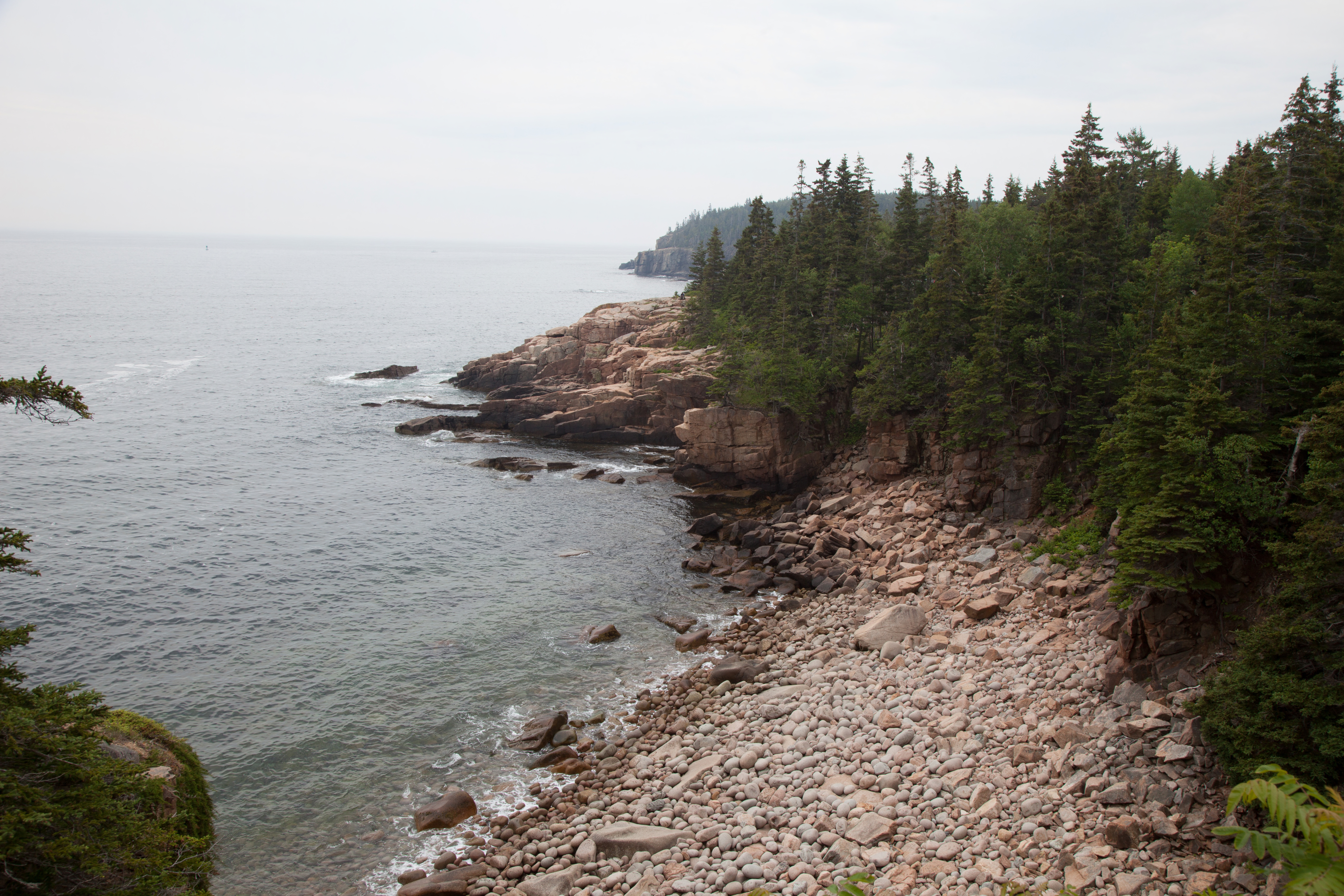 NorthEast coast rocky gravel shoreline in Mount Desert Island, Maine.