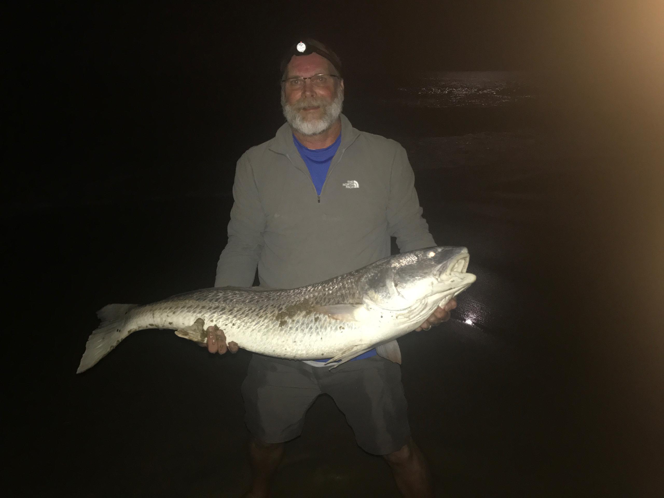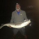 Angler holds large red drum fish caught during Back Bay NWR's special night fishing program.