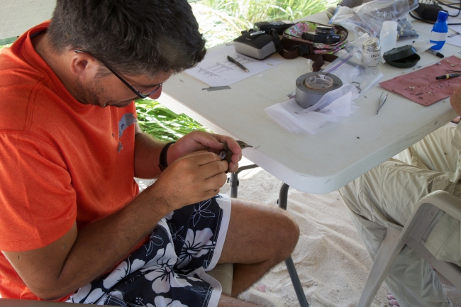 Field team studies Nihoa Millerbird. The Nihoa millerbird is a tiny land bird measuring approximately 5 inches in length that was discovered on the island of Nihoa in 1923. Another subspecies once occurred on Laysan Island, where it went extinct in the early 20th century after the island was devegetated by introduced rabbits. It has dark gray-brown feathers above, a buffy-white belly, and a thin dark colored bill. This bird got its name because its favorite food is the miller moth. Male and female birds are similar looking.