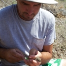 Field Team studies Nihoa Millerbird. The Nihoa millerbird is a tiny land bird measuring approximately 5 inches in length that was discovered on the island of Nihoa in 1923. Another subspecies once occurred on Laysan Island, where it went extinct in the early 20th century after the island was devegetated by introduced rabbits. It has dark gray-brown feathers above, a buffy-white belly, and a thin dark colored bill. This bird got its name because its favorite food is the miller moth. Male and female birds are similar looking. Field Team studies Nihoa Millerbird.