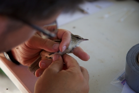 Field Team studies Nihoa Millerbird. The Nihoa Millerbird is a tiny land bird measuring approximately 5 inches in length that was discovered on the island of Nihoa in 1923. Another subspecies once occurred on Laysan Island, where it went extinct in the early 20th century after the island was devegetated by introduced rabbits. It has dark gray-brown feathers above, a buffy-white belly, and a thin dark colored bill. This bird got its name because its favorite food is the miller moth. Male and female birds are similar looking.