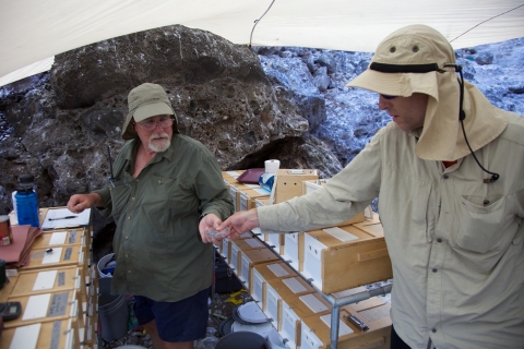 Caring for Nihoa Millerbirds after capture. The Nihoa Millerbird is a tiny land bird measuring approximately 5 inches in length that was discovered on the island of Nihoa in 1923. Another subspecies once occurred on Laysan Island, where it went extinct in the early 20th century after the island was devegetated by introduced rabbits. It has dark gray-brown feathers above, a buffy-white belly, and a thin dark colored bill. This bird got its name because its favorite food is the miller moth. Male and female birds are similar looking.