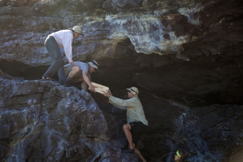 Nihoa Millerbird team safely transports Millerbirds off of Nihoa Island. The Nihoa millerbird is a tiny land bird measuring approximately 5 inches in length that was discovered on the island of Nihoa in 1923. Another subspecies once occurred on Laysan Island, where it went extinct in the early 20th century after the island was devegetated by introduced rabbits. It has dark gray-brown feathers above, a buffy-white belly, and a thin dark colored bill. This bird got its name because its favorite food is the miller moth. Male and female birds are similar looking.
