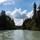 The Nisqually River in Washington on a perfect October day during a rafting survey radio tracking salmon.