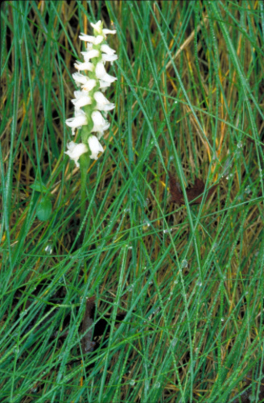 White orchid blossoms on single stalk. For additional resources about wildflowers visit the National Plants Database http://plants.usda.gov/.