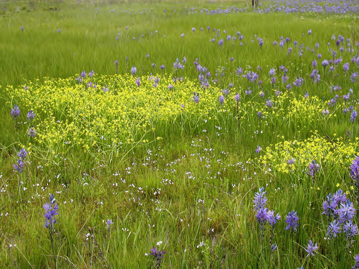 The name camas prairie refers to several distinct geographical areas in the western United States which were named for the native perennial camassia or camas, including regions in the states of Idaho, Montana, Oregon and Washington. Camas bulbs were an important food source for Native Americans. Image taken from USFWS Pacific Region Flickr page.